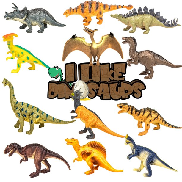 I Like Dinosaurs 12 Pack Of Realistic Large Sized 6 7 Inch Plastic Dinosaur Toys Walmart Com